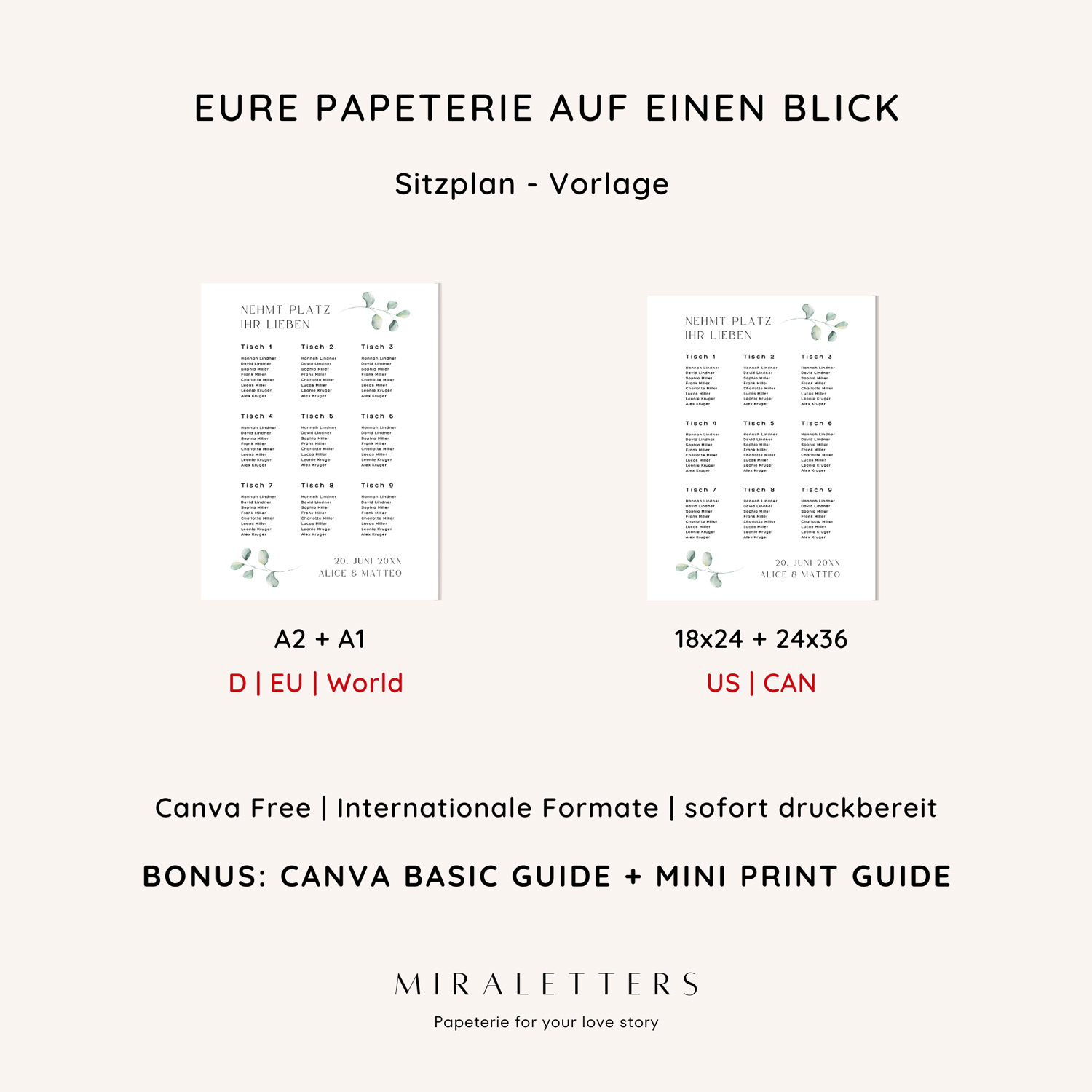 Sitzplan mit Eukalyptus | Greenery Canva Vorlage MIDORI