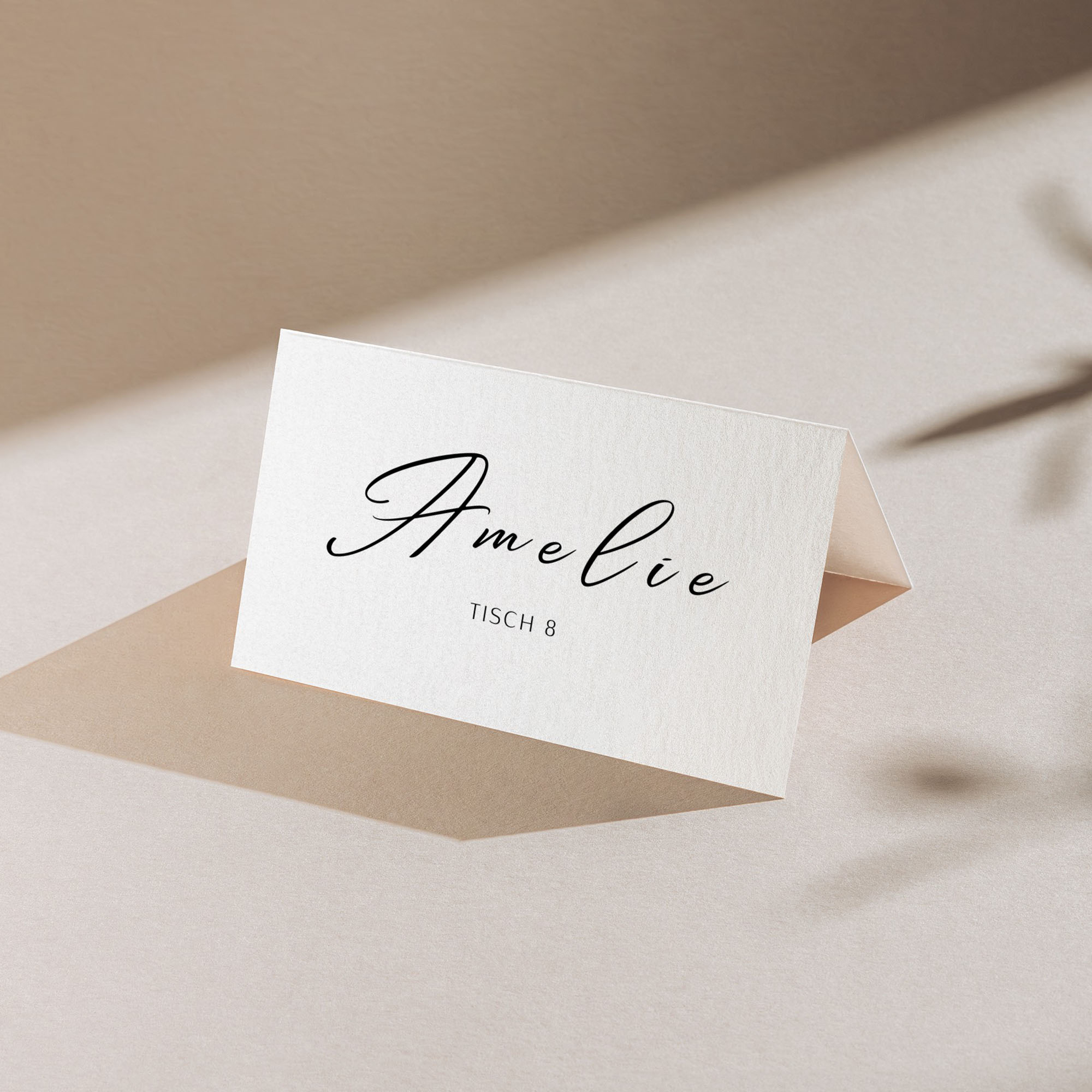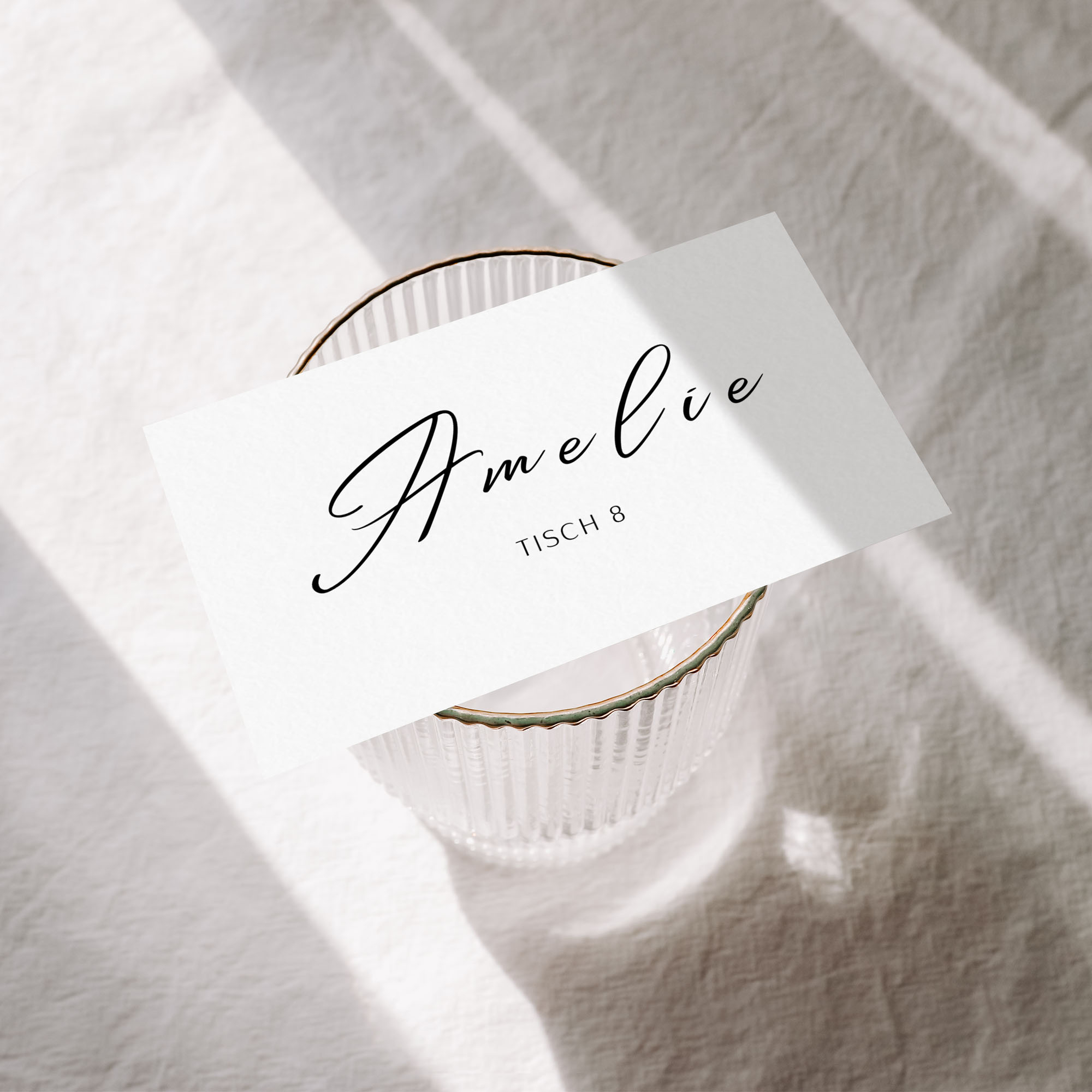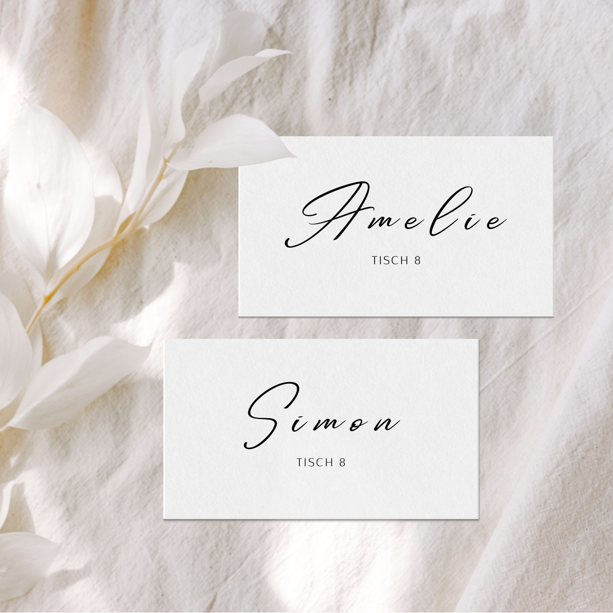 MINIMALISTISCHE PLATZKARTEN IN SCHWARZ-WEISS MIT MODERNER KALLIGRAPHIE