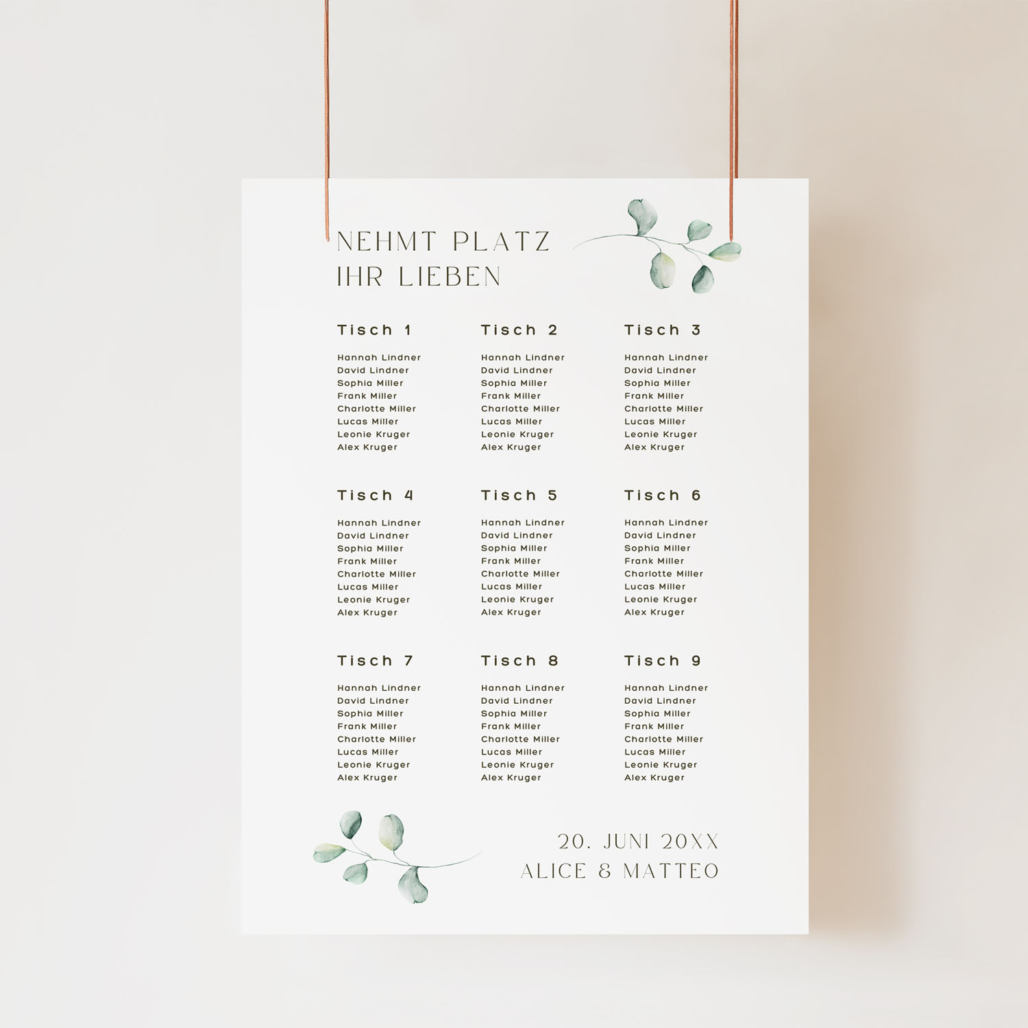 Sitzplan mit Eukalyptus | Greenery Canva Vorlage MIDORI