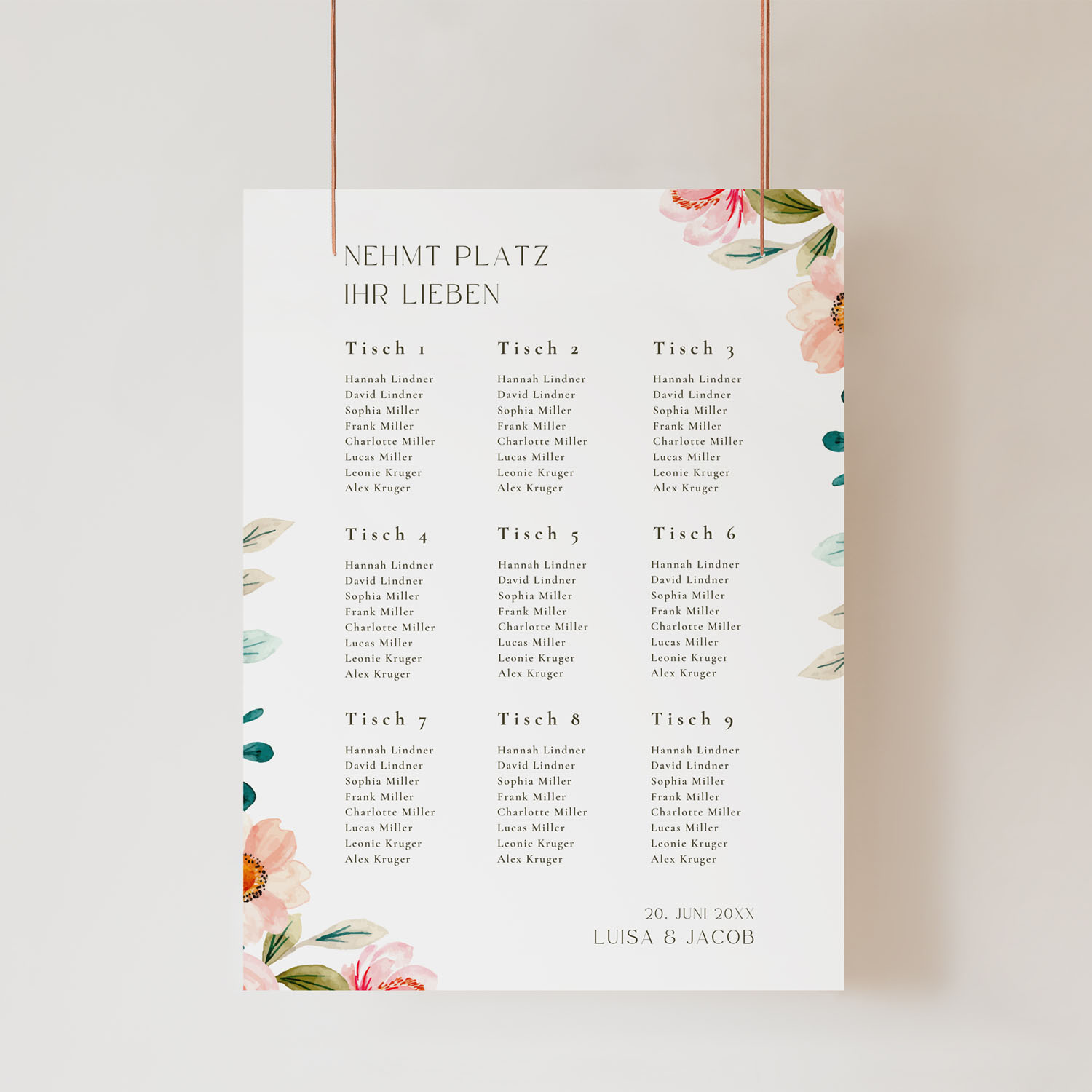 Elegante SITZPLAN VORLAGE FÜR EURE HOCHZEIT mit Blüten